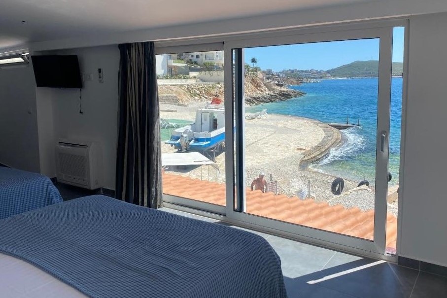 Dhoma të shkëlqyera me pamje mahnitëse nga deti: njëra në nivelin e 4-të, tjetra shumë e madhe (3 krevate) pothuajse në plazh.